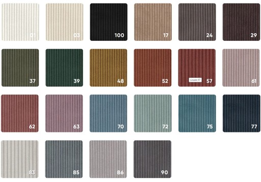 tkanina welurowa o delikatnym wzorze. Wytrzymała tkanina obiciowa o wysokiej odporności na użytkowanie dzięki zastosowaniu zaawansowanej technologii zmiękczania.