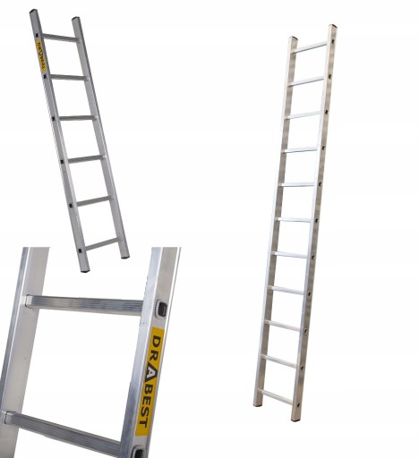 - Stabilne i mocne podłużnice aluminiowe o wymiarach profila: 58 x 25 mm(w drabinach 5-14 szczebli), 75 x 30 mm (w drabinach 15-16 szczebli)