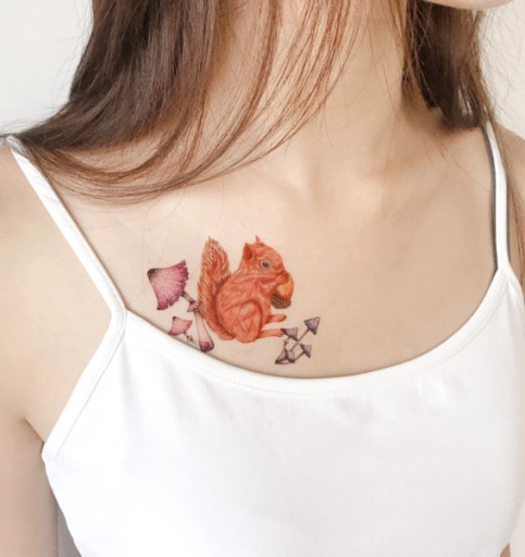 Tatuaż wodny | tymczasowy Wiewiórka i muchomory