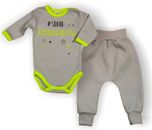 Komplet składa się z BODY z długim rękawem oraz LEGGINSÓW w formie spodenek stworzonych z myślą o jak największej wygodzie noszenia dla niemowląt.