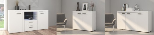 Jest to nowoczesny mebel, który wpasuje się w każde wnętrze. Meblościanka posiada otwarte szklane półki, które można podświetlić oświetleniem LED co jeszcze bardziej podkreśli charakter mebla