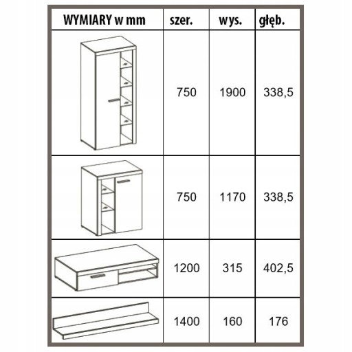 Do meblościanki RUMBA dedykowane są komody RUMBA, które można kupić na naszych innych aukcjach.