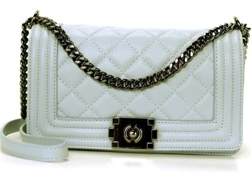 Sztywny pikowany , pojemny kuferek z grafitowymi okuciami . Najnowszy model klasycznej chanelki. Zapinana na bigiel. Rozmiar akurat - pojemna. Bardzo ozdobna i zgrabna .