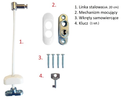 Zabezpieczenie okienne można zamykać i otwierać kluczykiem gdy zachodzi potrzeba całkowitego otwarcia okna.