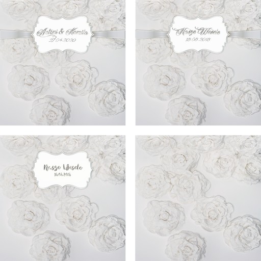 Wszystkie tła można dowolnie personalizować. Możemy użyć wybranego zwrotu, hasła, imion, dat, a także zmienić czcionkę na taką, która Państwu będzie odpowiadała.