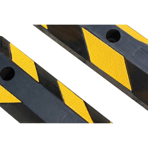 Odbojnice wykonano z twardego kauczuku, wyposażone zostały w żółte taśmy odblaskowe. Separatory parkingowe są trwałe, odporne na zmienne warunki atmosferyczne.