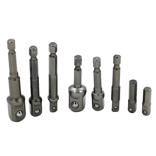 Adaptery redukcja do nasadek wkrętarki, redukcje 1/4 3/8 1/2, zestaw 8 szt.