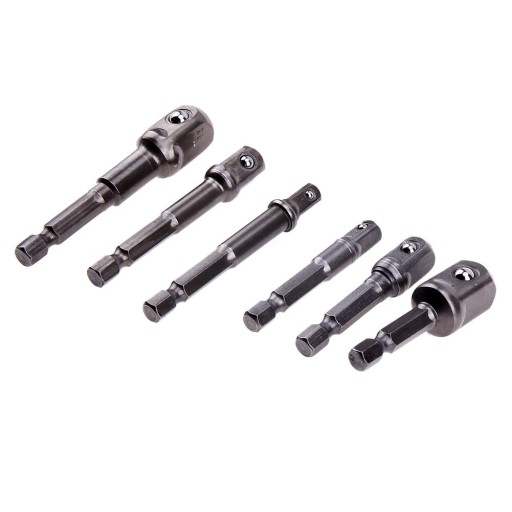 Umożliwiają zastosowanie nasadek o różnym gnieździe z narzędziami, posiadającymi uchwyt wkrętakowy 6-ciokątny.