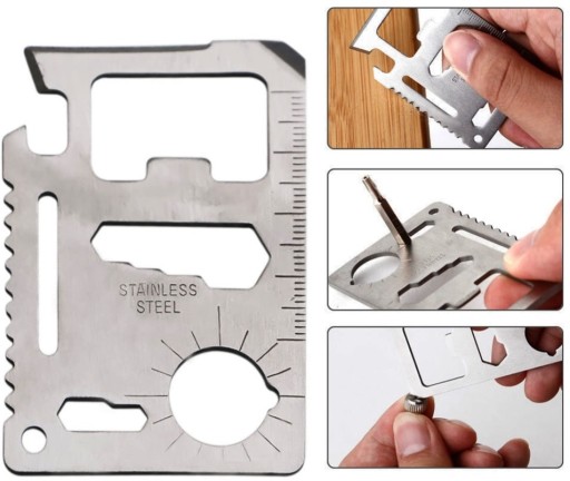 Niewielkich rozmiarów karta survivalowa (multitool) nadająca się do noszenia w portfelu, dzięki czemu zawsze będziesz miał ją przy sobie w razie awaryjnej sytuacji.
