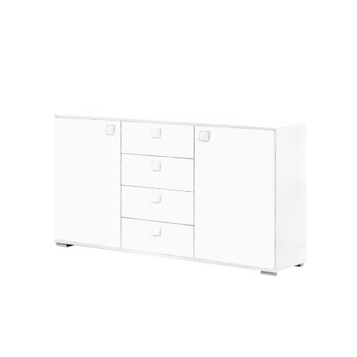 - Posiada cztery pojemne, wysuwane szuflady oraz dwie duże szafki z uchylnym frontem