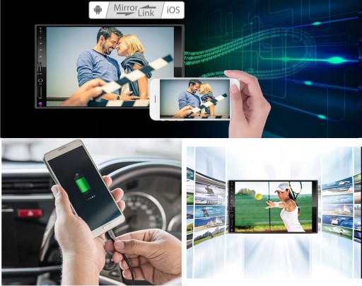 MirrorLink za pomocą kabla USB pozwala na kopiowanie ekranu smartfonu z systemem Android lub iOS. Dzięki temu możemy zobaczyć to samo co w telefonie na radioodtwarzaczu np. program nawigacyjny GPS , odtwarzacz muzyki , książka telefoniczna i klawiatura , by bezpieczniej używać komórki podczas podróży samochodem