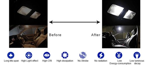 Zastosowanie: oświetlenie tablicy rejestracyjnej,żarówka do czytania Oświetlenie schowków, Oświetlenie wnętrza, Podświetlenie tablicy rejestracyjnej, Podświetlenie dolne drzwi, Podświetlenie powierzchni bagażowej