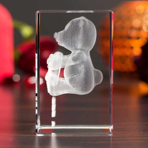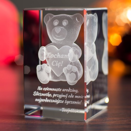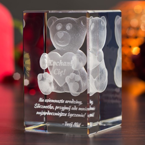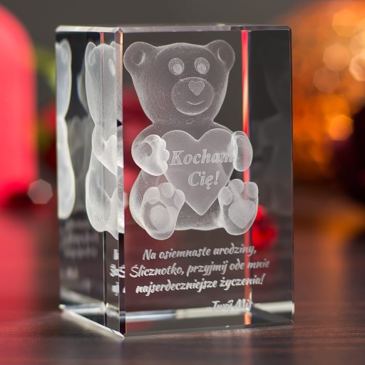 Przestrzenny model uroczego pluszowego misia wygrawerowany w krysztale 3D razem z Twoją dedykacją!