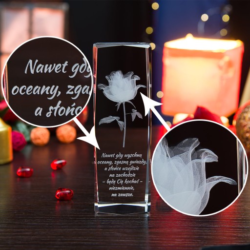 - Nasz kryształ 3D możesz poddać personalizacji. Wystarczy, że dodasz do niego swoje życzenia, a stanie się wspaniałym prezentem, który przez lata będzie przywoływał wyłącznie najlepsze wspomnienia związane z Twoją osobą!