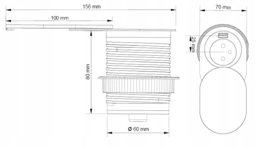 Gniazdo Wtyczkowe Meblowe Wpuszczane w Blat z USB