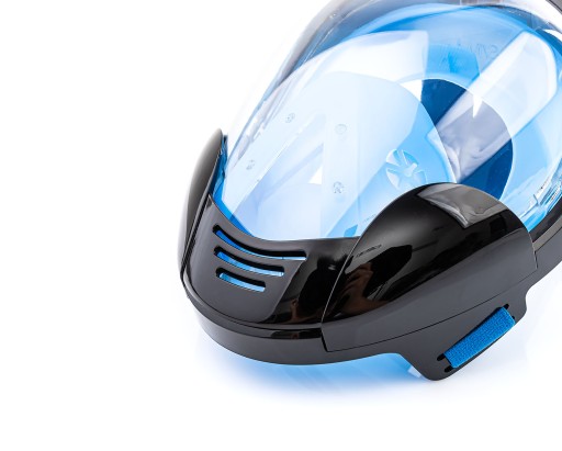 Maska posiada na nowo zaprojektowany system zabezpieczający fajkę przez zalaniem wodą podczas zanurzenia.