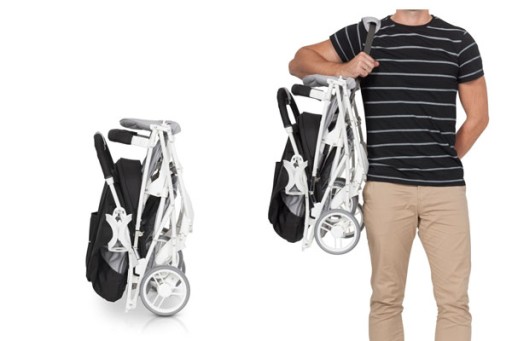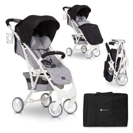 Innowacyjny sposób składania i transportowania dzięki systemowi składania jedną ręką (naciskasz jeden guzik), złożysz wózek w kilka sekund, nawet trzymając dziecko lub zakupy w drugiej ręce. Złożoną spacerówkę w pokrowcu możesz ciągnąć za uchwyt w podobny sposób jak walizkę, odciążając w ten sposób kręgosłup.