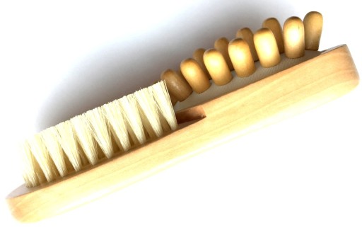 Posiada włosie oraz drewniane kołki. Nadaje się zarówno do masażu na mokro jak i na sucho.
