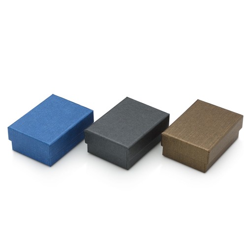 Ozdobne pudełeczko na spinki do mankietów, kolczyki lub inna biżuterię wykonane z kartonu. Pudełeczko dostępne jest w trzech kolorach: niebieskim, ciemnozłotym i czarnym. Do kompletu ozdobna torebeczka dobrana pod kolor pudełka. Wymiary pudełka: 70x50x30mm.
