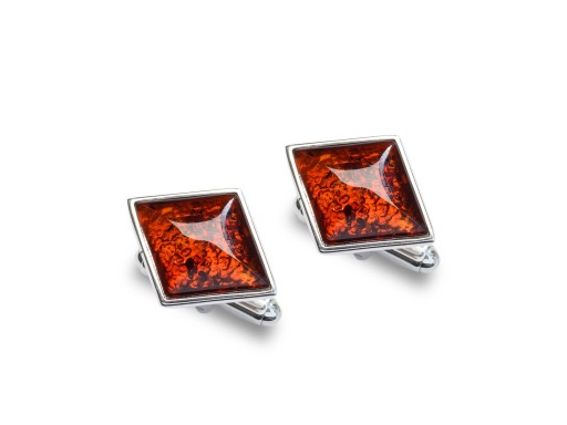 SREBRNE SPINKI DO MANKIETÓW Z BURSZTYNEM W FORMIE ROMBÓW
