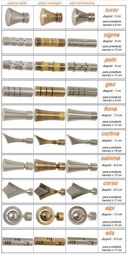 Elementy składowe karnisza to (wszystko metal) :