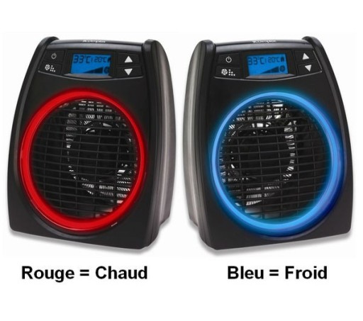 - urządzenie podświetlone na czerwono gdy grzeje i niebiesko w funkcji wentylatora
