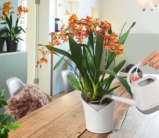 Aby jak najlepiej naśladować naturę, system nawadniania został całkowicie dostosowany do potrzeb storczyków. Półprzezroczysty, wyjmowany wkład roślinny zapewnia korzeniom wystarczającą ilość światła, a specjalnie opracowane podłoże orchidei (w zestawie) zapewnia również zrównoważone zaopatrzenie w wodę i powietrze, dobre magazynowanie składników odżywczych i stałą wartość pH. W doniczkach ORCHIDEA firmy LECHUZA Twoje storczyki będą czuły się wspaniale.