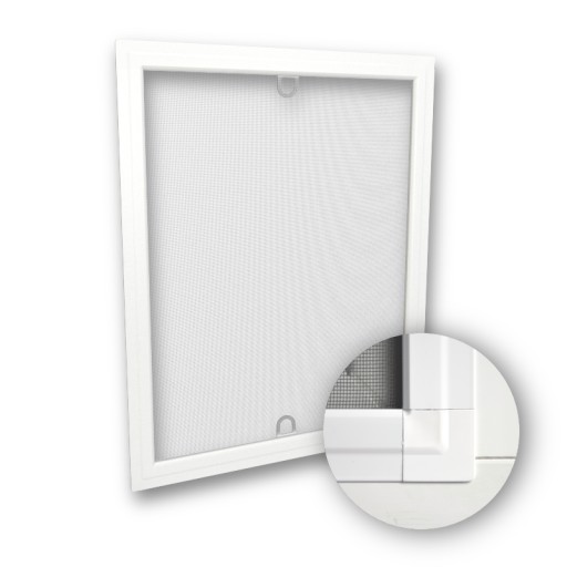 - moskitiera ramkowa wykonana jest z profilu aluminiowego z narożnikami zewnętrznymi wykonanych z wysokiej jakości bardzo mocnego PVC