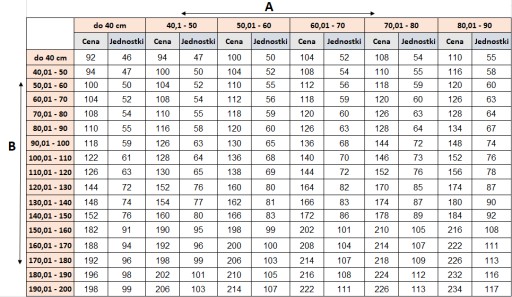 2. Podaj wymiar A - szerokość i B - wysokość