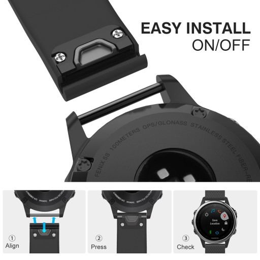 CZARNY Silikonowy Pasek Garmin FENIX 5S QuickFit