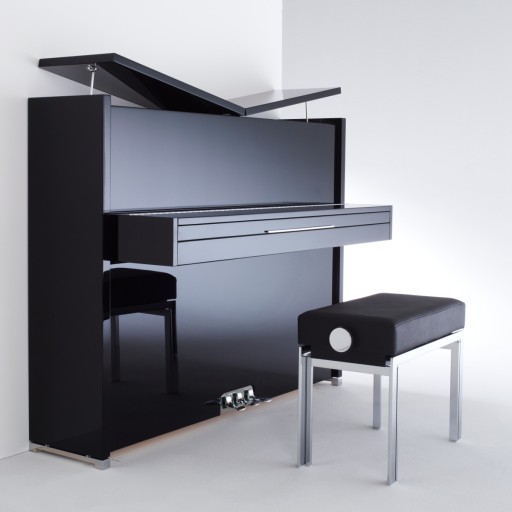 Pokrywa pianina po otwarciu tworzy skrzydlaty profil, rozprzestrzeniający dźwięk instrumentu po pokoju.