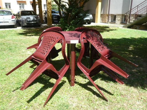Główne zalety:-wykonany z mocnego plastiku, solidny i trwały-bardzo łatwy w złożeniu- na środku stół posiada otwór na parasol oraz zaślepkę w zestawie- jest łatwy w utrzymaniu w czystości - wystarczy przetrzeć miękką ściereczką z wodą lub wodą z dodatkiem delikatnych środków czyszczących- stół posiada demontowane nogi, które można schować pod blatem. Dzięki takiemu rozwiązaniu oszczędzają Państwo miejsce podczas zimowego przechowywania.