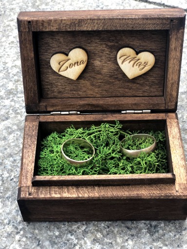 ДЕРЕВЯННАЯ ШКАТУЛКА ДЛЯ ОБРУЧАЛЬНЫХ КОЛЬЦ С КОРИЧНЕВЫМ МХОМ