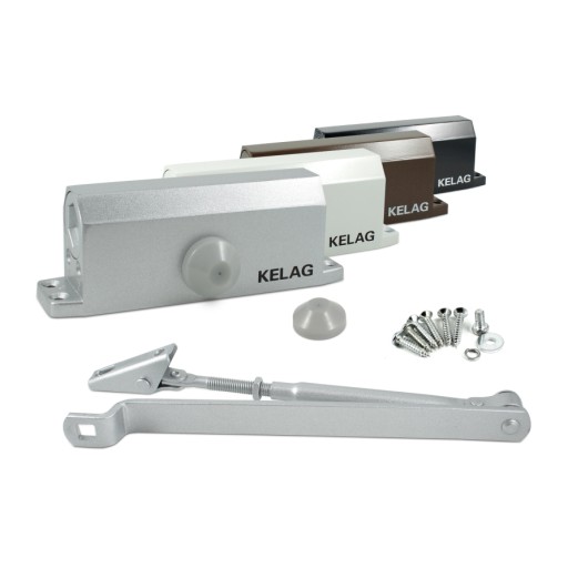 Uniwersalny samozamykacz drzwiowy KELAG z blokadą otwarcia.