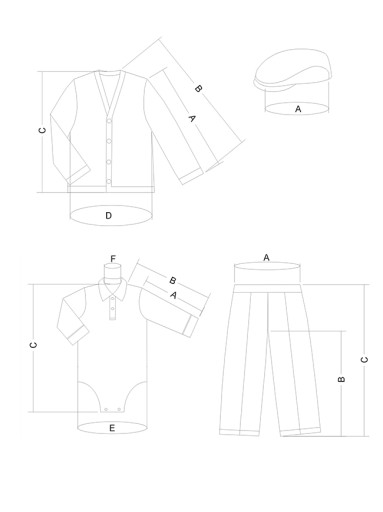 - czapka typu kaszkiet, wykonana z tkaniny garniturowej jak spodenki, wyłożona podszewką z bawełny, z tyłu wszyta guma dla regulacji obwodu