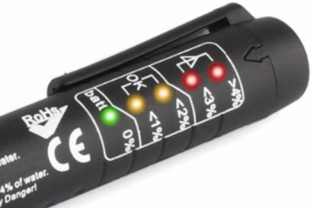 - Wyposażone jest w sondę do badania przewodności elektrycznej płynu na podstawie ilości zawartej w nim wody,