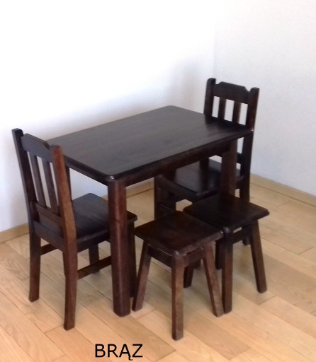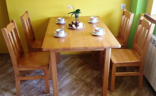 - Solidny drewniany stół, wykonany z wysokiej jakości drewna sosnowego.