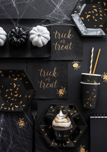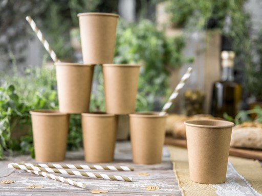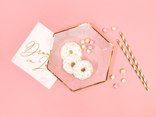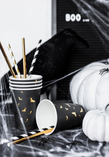Słomki papierowe w kolorze złotym z białymi ukośnymi paskami