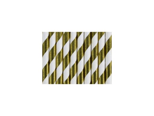 Słomki papierowe w kolorze złotym, metalizowanym z białymi ukośnymi paskami