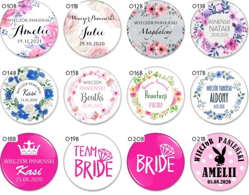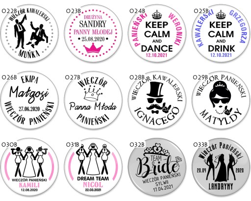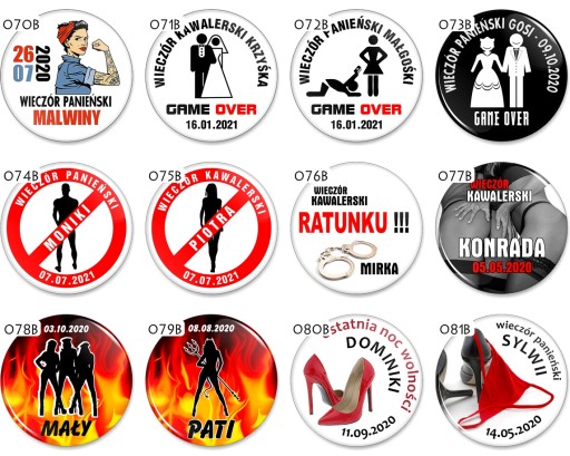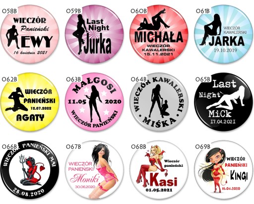 Przypinki na Wieczór Panieński, Kawalerski...