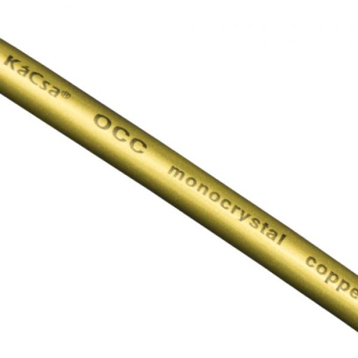 Symetryczny kabel połączeniowy (interkonekt) z linii OCC firmy KáCsa. Przewodnik wykonany z bardzo wysokiej czystości miedzi 6N UP-OCC (Ohno Continuous Casting). Świetnie pokazuje zalety miedzi OCC.