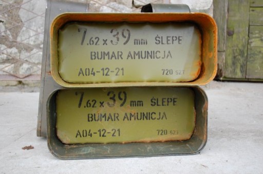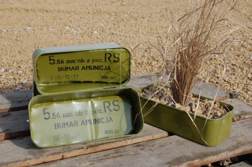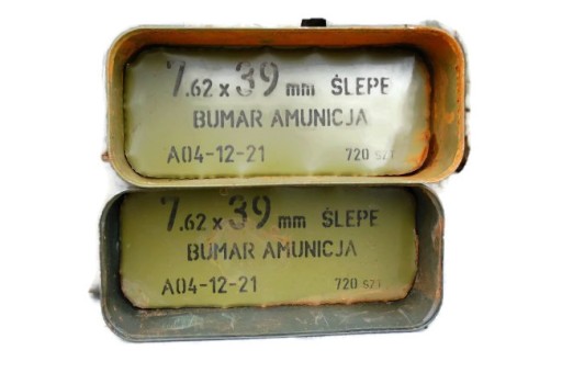 W oryginale puszka po amunicji. Ze względu na długi okres magazynowania mogą być delikatnie przybrudzone lub pordzewiałe.