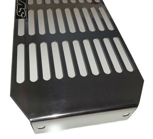 Solidna osłona chłodnicy wykonana ze stali nierdzewnej/kwasoodpornej o grubości 1 mm.
