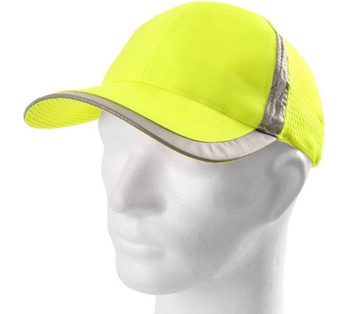 Czapka baseball'ówka wysokiej widoczności z odblaskowymi pasami. 4 z 6 paneli wykonane z przewiewnej tkaniny siatkowej. Czapki idealne na gorące, letnie dni.