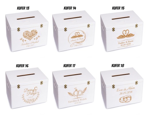 BIAŁA SKRZYNIA NA KOPERTY ŚLUBNE Z GRAWEREM