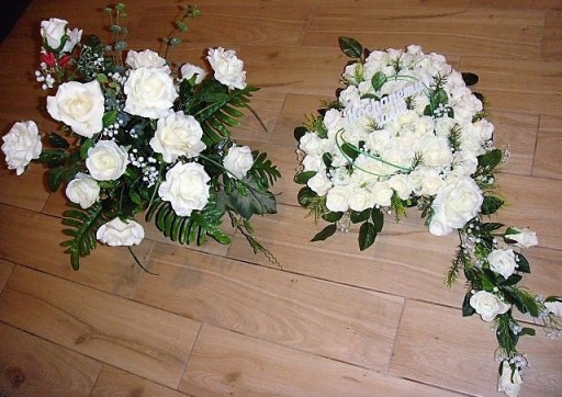 Jeżeli kompozycja jest zakupiona na pogrzeb (w stroik możemy wpiąć GRATIS wstążkę z napisem OSTATNIE POŻEGNANIE albo inną wstążkę ozdobną w wybranym kolorze
