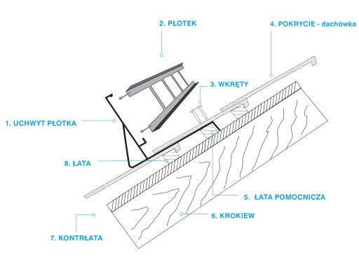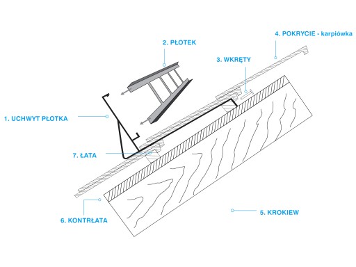 - Kompletnego płotka przeciwśniegowego KARP-U do pokrycia z dachówki karpiówki (łuska)