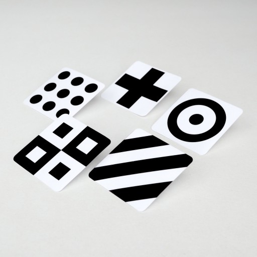 - czarno-białe wzory zapewniają największy kontrast, odpowiedni dla rozwijającego się wzroku,