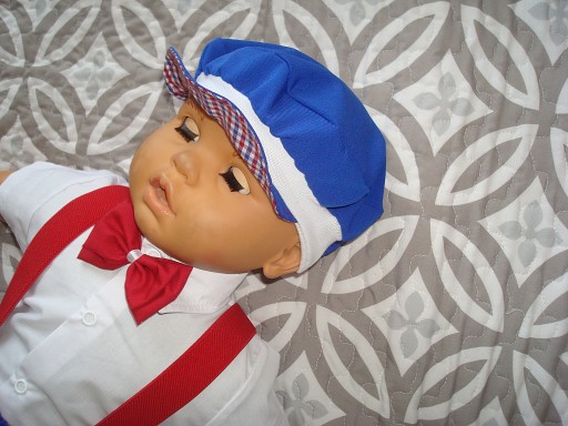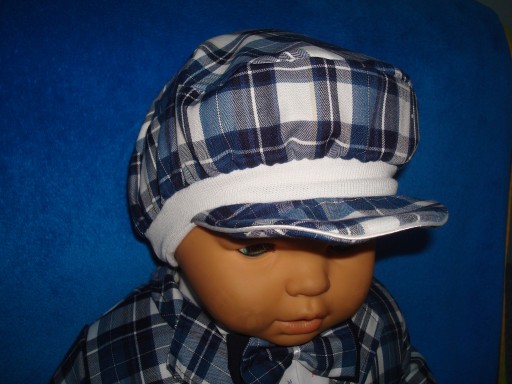 CZAPECZKA KASZKIECIK SZYTAPOD ROZMIAR Z DASZKIEM Z TYŁU CZAPKI WSZYTA GUMKA DO REGULACJI OBWODU.