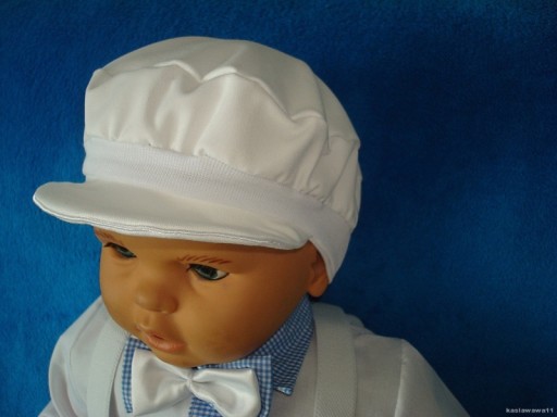 CZAPECZKA KASZKIECIK SZYTAPOD ROZMIAR Z DASZKIEM Z TYŁU CZAPKI WSZYTA GUMKA DO REGULACJI OBWODU.